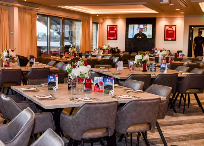 Genießen Sie reservierte Sitzplätze am Auswärtstrend mit gemeinsamen Tischen und sorgen Sie so für eine lebendige Atmosphäre unter den anderen Unterstützern. Gönnen Sie sich ein köstliches Drei-Gänge-Menü, das von unserem hauseigenen Catering-Team zubereitet und von aufmerksamen Kellnern serviert wird. Bleiben Sie mit einem Teamblatt auf dem Laufenden und genießen Sie einen Tee oder Kaffee zur Halbzeit. Verpassen Sie keinen einzigen Moment der Fernsehübertragungen! Tickets können am Veranstaltungstag an der Hauptrezeption des Highbury Stadium abgeholt werden. Erleben Sie mit uns ein unvergessliches Spieltagserlebnis