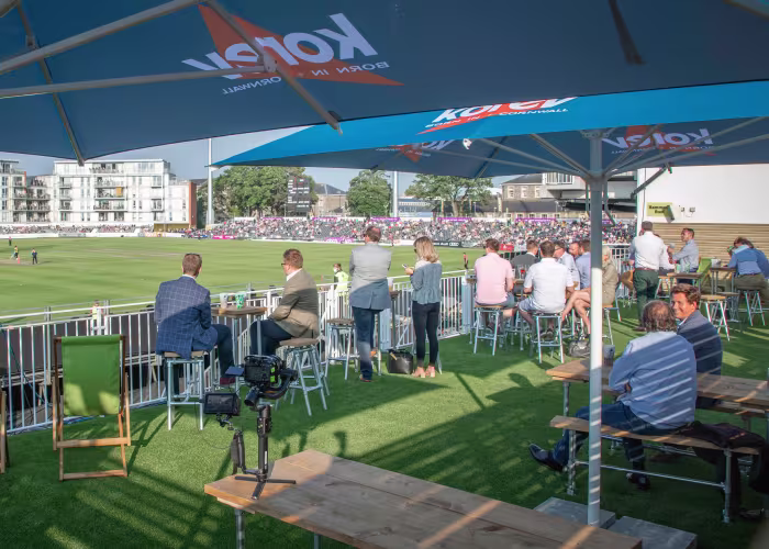 The Korev Roof Terrace is a relaxed, open-air space that offers a unique way to enjoy cricket. Elevated above the ground, it combines fantastic views with a sociable, laid-back atmosphere, where fans can grab a drink, mingle, and experience the game in comfort away from traditional seating.